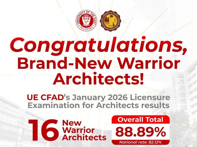Cheers to the UE College of Fine Arts, Architecture and Design (CFAD) and our newest set of Bachelor of Science in Architecture (BS Arch) graduates who passed the latest Architect Licensure Examination (ALE)! UE CFAD yielded a total of 16 new Architects: 12 first-time examinees and four re-takers. These successful examinees collectively gave the UE CFAD an overall January 2026 ALE passing percentage of 88.89%, which is higher than the...Read More